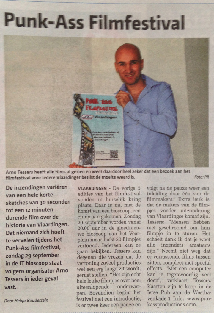 Aankondiging voor het filmfestival 2013 met nog een paar dagen te gaan nog even een laatste bericht in de krant om Vlaardingen op de hoogte te houden.
